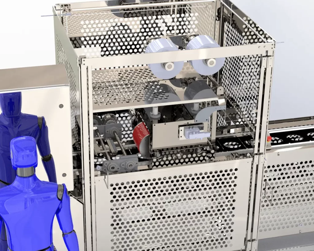 This is a 3D rendering of an FEMC Roller Drum Heat sealer for food packaging automation equipment.